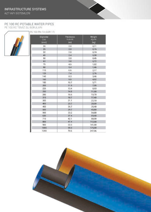 Temiz Su Borusu P100 PN10-SDR17